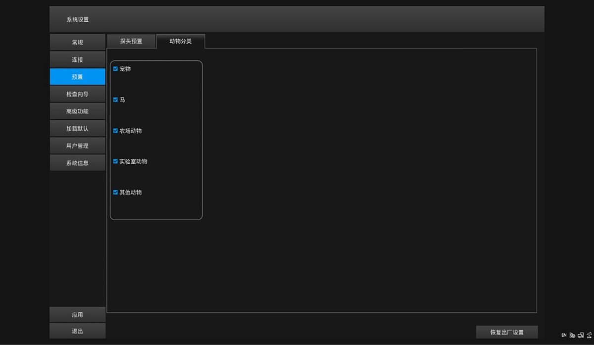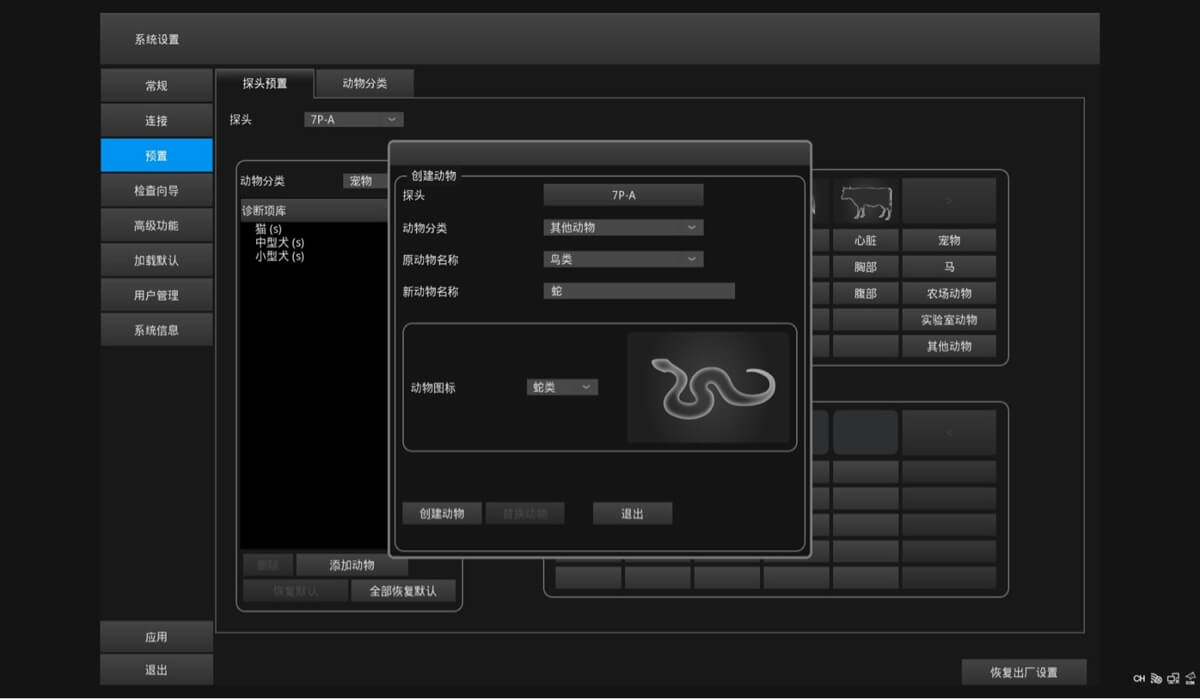 可为特定应用场景自定义预设动物类型和相应的动物检查图标。